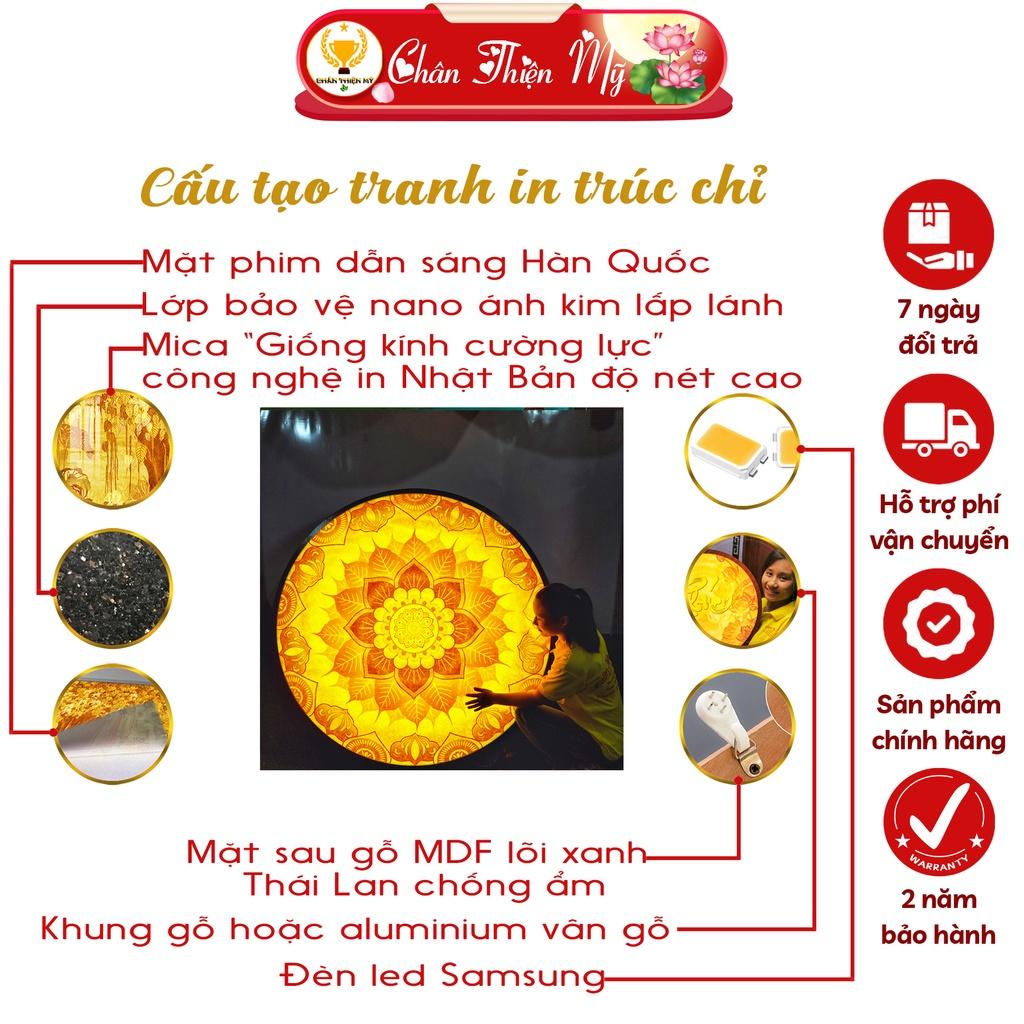 1. THÔNG TIN CHUNG - Tên sản phẩm: Đèn Thờ Hào Quang Phật Tranh Trúc Chỉ, Trang Trí Bàn Thờ, Hào Quang Trúc Chỉ Hoa Sen Chữ Phúc TC-HQ-125 - Đèn Thờ Hào Quang Trúc Chỉ CHÂN THIỆN MỸ là dòng sản phẩm đèn thờ cao cấp nhất hiện nay, dùng để thay thế cho các loại đèn thờ đã cũ và đơn giản khác như đèn dầu, đèn thờ bằng gỗ, mang lại may mắn, bình an và thu hút tài lộc cho gia chủ. - Sự kết hợp giữa những họa tiết của tranh trúc chỉ mang ý nghĩa tâm linh lẫn phong thủy cùng với ánh sáng từ hệ thống đèn LED tạo nên sản phẩm đèn thờ hào quang trúc chỉ cao cấp vừa mang nét cổ kính lẫn hiện đại, phù hợp với mọi không gian thờ cúng từ bàn thờ Phật đến bàn thờ Gia Tiên. 2. CẤU TẠO VÀ CHẤT LIỆU - Bề mặt tranh: Được in bằng công nghệ Nhật Bản trên tấm film dẫn sáng của Hàn Quốc tạo nên ánh sáng chan hòa đều khắp mặt tranh. Bề mặt tranh được phủ thêm một lớp ánh kim 5D chống bay màu, không bám bẩn, khi không bật đèn lấp lánh ánh kim sa, tạo nên sự sang trọng và cao cấp cho sản phẩm. - Phần khung: Alu 2 lớp phủ nano vân gỗ chắc chắn, chống thấm nước, kháng bụi, không phai màu và bền đẹp theo thời gian. - Hệ thống điện: Sử dụng hệ thống đèn LED cao cấp cho ánh sáng dịu mắt, tiết kiệm điện và có độ bền lên đến 20 năm. Sản phẩm đã có sẵn chuôi cắm dài 1.5m, sử dụng nguồn điện trực tiếp 220V. 3. KÍCH THƯỚC - Đường kính từ 22cm đến 60cm, chuẩn phong thủy Lỗ Ban - Ngoài các kích thước ở trên, xưởng còn nhận làm theo kích thước khách hàng yêu cầu. Quý khách vui lòng gửi tin nhắn để được tư vấn thêm. 4. ĐẶC ĐIỂM NỔI BẬT CỦA CÁC DÒNG SẢN PHẨM CHÂN THIỆN MỸ - Xưởng sản xuất CHÂN THIỆN MỸ tự hào là đơn vị sở hữu rất nhiều mẫu mã độc quyền, cùng nhiều hoa văn - họa tiết mang ý nghĩa tâm linh lẫn phong thủy, có sự khác biệt lớn với phần còn lại của thị trường - Xưởng có thể sản xuất được đa dạng các loại kích thước từ nhỏ đến rất lớn mà nhiều đơn vị khác chưa làm được - Xưởng trực tiếp sản xuất và phân phối sản phẩm, không qua trung gian với giá thành tốt nhất và chất lượng luôn ở mức cao nhất 5. CÁCH VỆ SINH - Dùng n ước sạch và khăn mềm để lau chùi bụi bẩn thoải mái mà không sợ tranh bị bay màu6. CHÍNH SÁCH ĐỒNG KIỂM, BẢO HÀNH VÀ ĐỔI TRẢ - Xưởng sản xuất CHÂN THIỆN MỸ luôn hoạt động với tiêu chí “Uy tín là danh dự - Chất lượng là tiên phong”, cùng phương châm bán hàng “Gieo nhân duyên hướng đến giá trị Chân - Thiện - Mỹ” - Quý khách được kiểm tra hàng và thử đèn trước khi thanh toán. - Đổi trả, hoàn tiền hoặc đổi mới sản phẩm tương đương trong vòng 7 ngày nếu sản phẩm quý khách nhận được bị lỗi, thiếu hàng, nhầm hàng hoặc sai kích thước. - Bảo hành toàn quốc 2 năm #chanthienmy #denbantho #denhaoquang #denhaoquangphat #denhoasendothocung #dentho #denthocung #denthodep #denthohoasen #dotho #dothocung #dotrangtribantho #haoquang #haoquangphat #trangtribantho #tranhchitruc #tranhtho #tranhtrucchi #tranhtrucchihoasen #tranhtrucchimandala #tranhtrucchiphongtho #trucchiGiá sản phẩm trên Tiki đã bao gồm thuế theo luật hiện hành. Bên cạnh đó, tuỳ vào loại sản phẩm, hình thức và địa chỉ giao hàng mà có thể phát sinh thêm chi phí khác như phí vận chuyển, phụ phí hàng cồng kềnh, thuế nhập khẩu (đối với đơn hàng giao từ nước ngoài có giá trị trên 1 triệu đồng).....