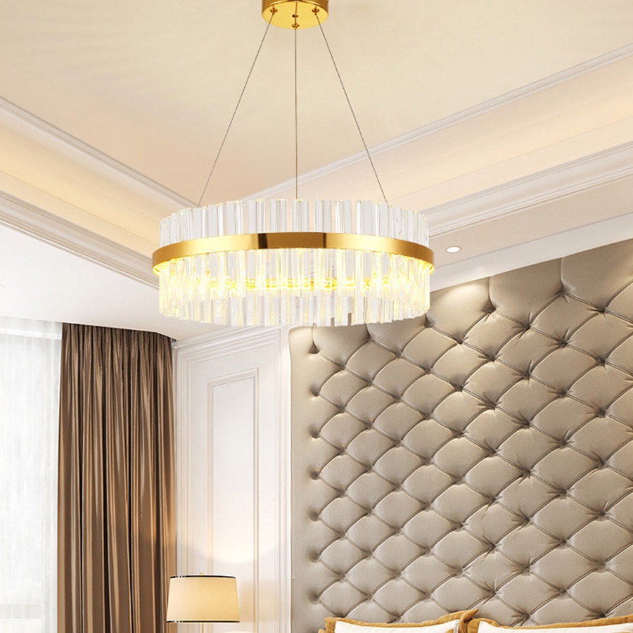 Đèn trần phòng khách pha lê hiện đại trang trí thả cao cấp, chung cư DT138 mạ vàng, đèn LED