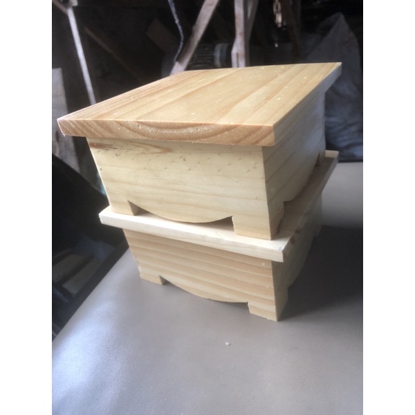 Đôn vuông kê bát hương tượng thần tài màu gỗ tự nhiên