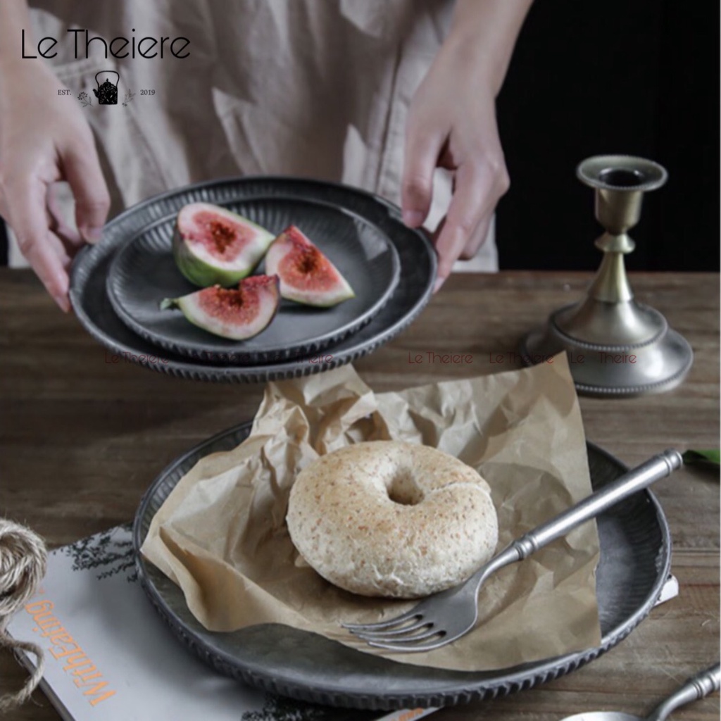 Đĩa Đựng Đồ Ăn - Tráng Miệng - Trái Cây Bằng Kim Loại Vintage Cổ Điển Hình Tròn Decor Vân Chìm