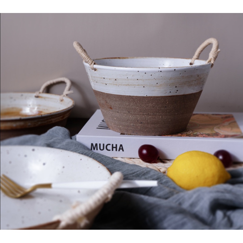 Đĩa vintage có quai dây thừng Mã sản phẩm: V2 67 Phong cách retro cổ điển hoài niệm chất sứ lì, phủ bóng nhẹ dây quai chắc chắn