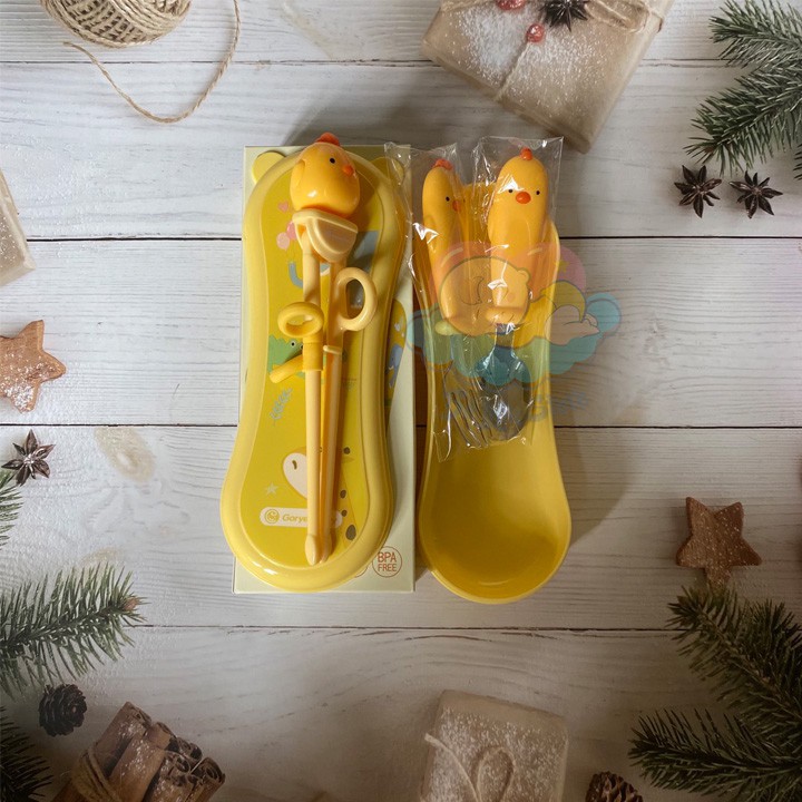 MÔ TẢ SẢN PHẨM - Set đũa tập ăn cho bé hãng Goryeo baby gồm 1 đôi đũa, 1 cái thìa, 1 cái dĩa đựng trong 1 cái hộp siêu xinh ạ. - Set đũa tập ăn cho bé hãng Goryeo baby gồm đũa tập ăn xỏ ngón với đầu đũa dẹt, có gợn ma sát giúp gắp thức ăn tốt, phần xỏ ngón silicon m