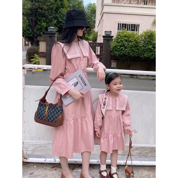 Đầm đôi cho mẹ và bé cổ thuỷ thủ phối ren BAM STORE