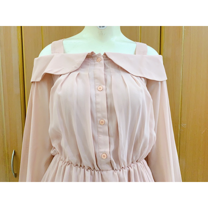Đầm 2hand Nhật hiệu Cona blue voan cam trễ vai tay dài