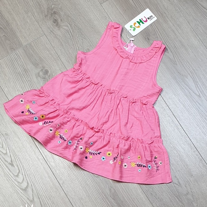 Đầm Bé Gái Vải Đũi Cao Cấp, hình Thêu Hoa Chân Váy hàng Việt Nam- K84