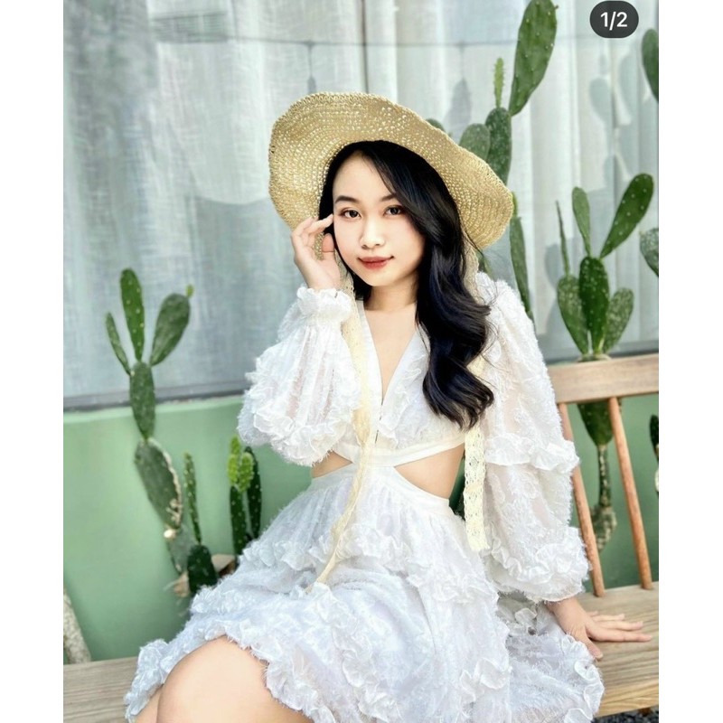ĐẦM BÔNG VẢI BÈO CUT OUT TRẮNG