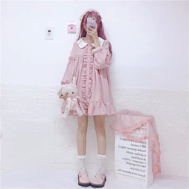 Đầm babaydoll hồng lolita NB kèm ảnh thật 🌸