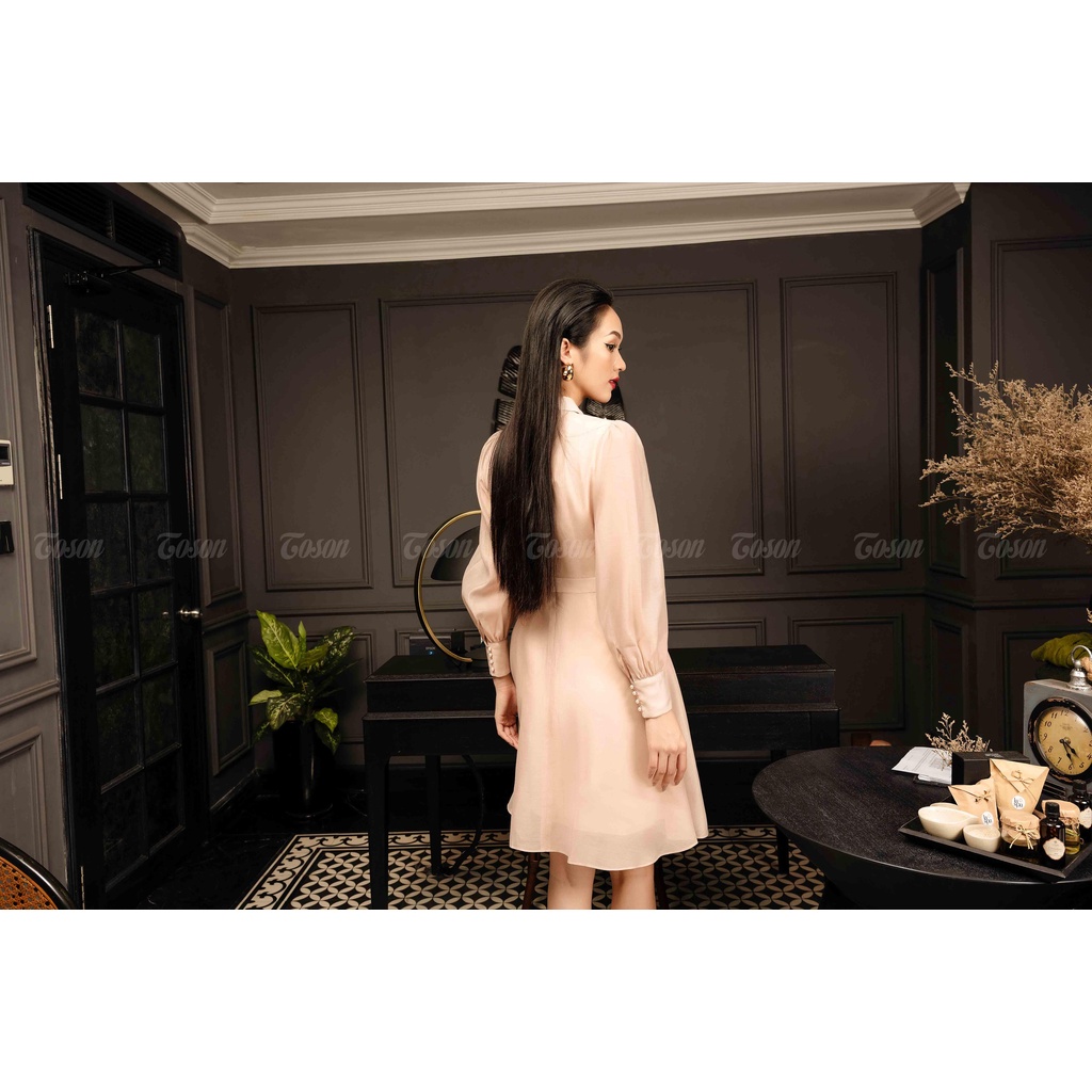 Đầm be tơ, dáng xòe nhẹ, cổ Đức, tà bong đính cườm thủ công Toson 49542E52