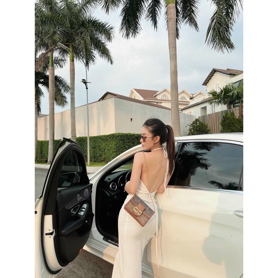 Đầm body dây kiểu yếm hở lưng maxi dáng dài xẻ tà bên sexy LY62