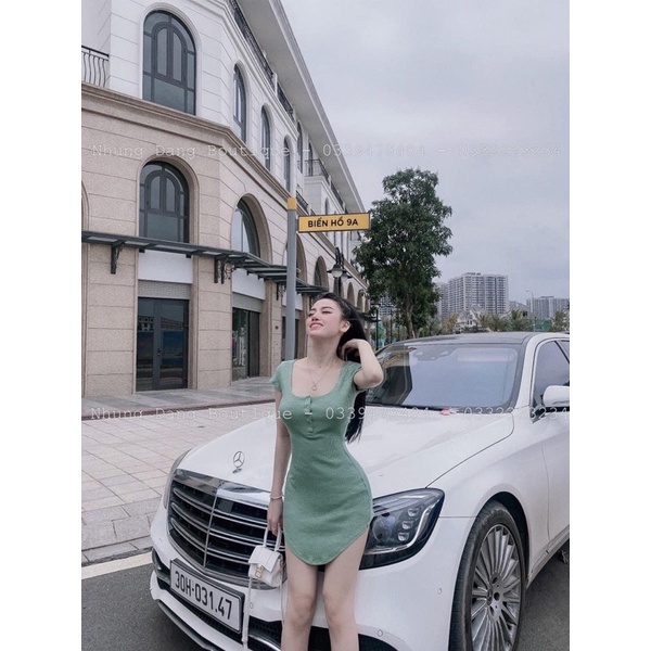 Đầm body nữ tay ngắn phối nút kiểu tà vạt bầu chất vải thun gân len 4 chiều FreeSize Hot váy ôm