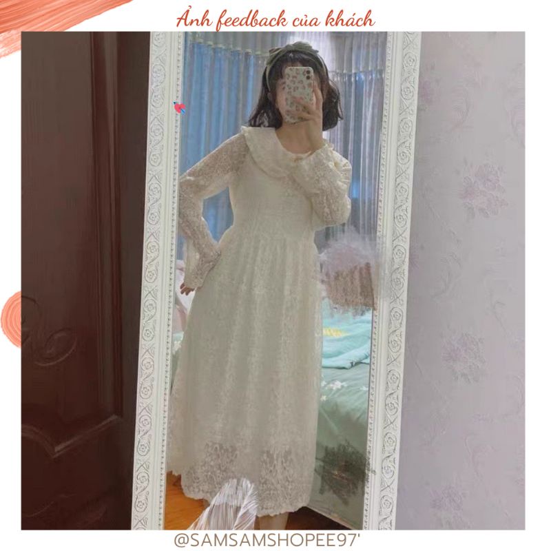 Đầm dài tay trắng tiểu thư Vintage