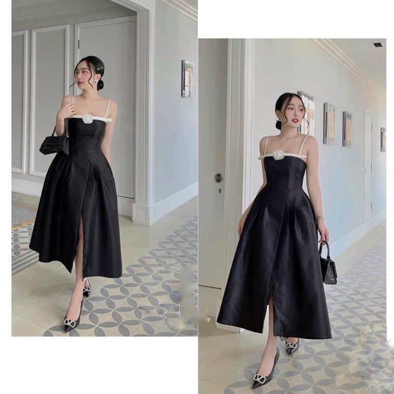 Đầm dự tiệc 2 dây phi tafta tặng kèm hoa