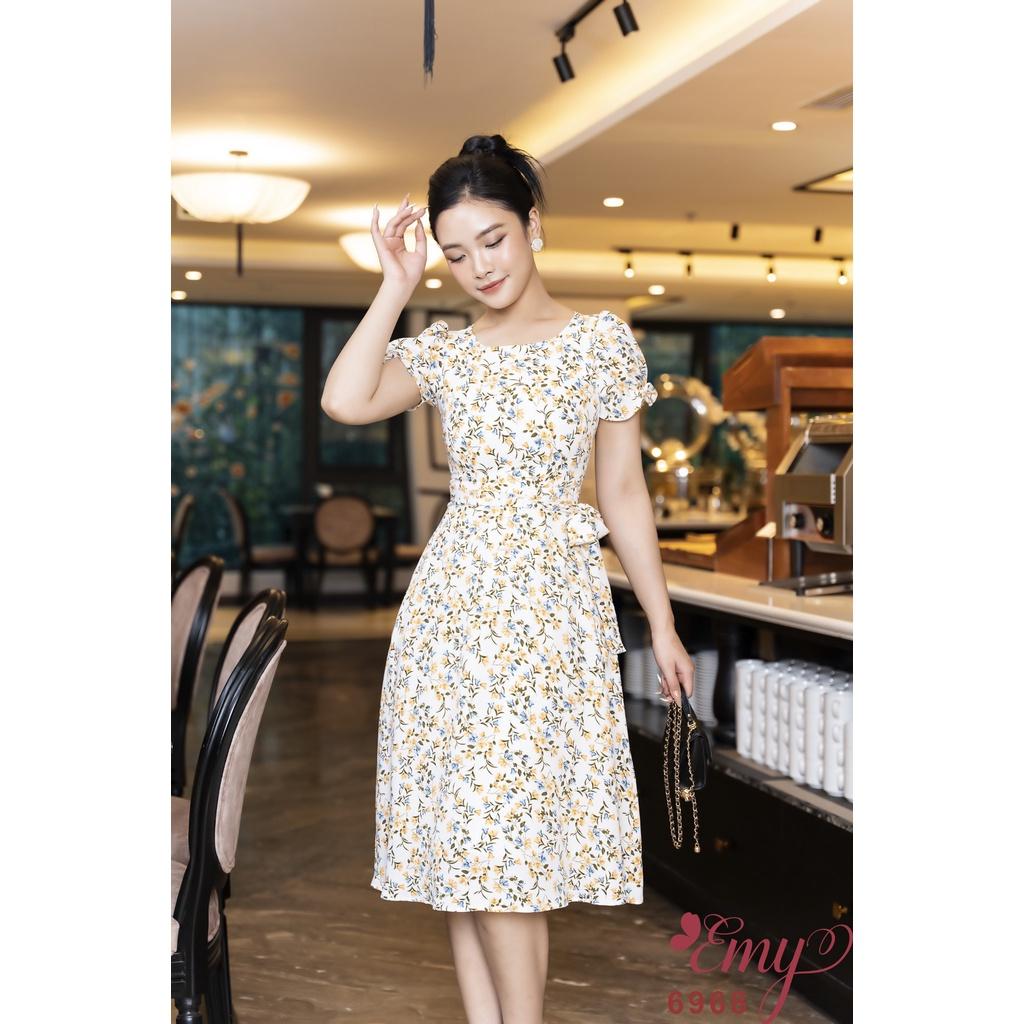 Đầm EMY EM6968 Xoè Cổ Tròn Bèo Tay
