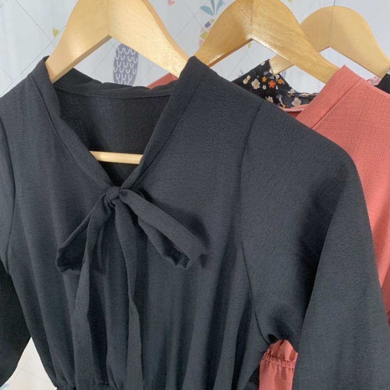 Đầm hoa nhí cột nơ cổ dáng dài siêu dễ thương, Váy hoa nhí dáng dài vintage