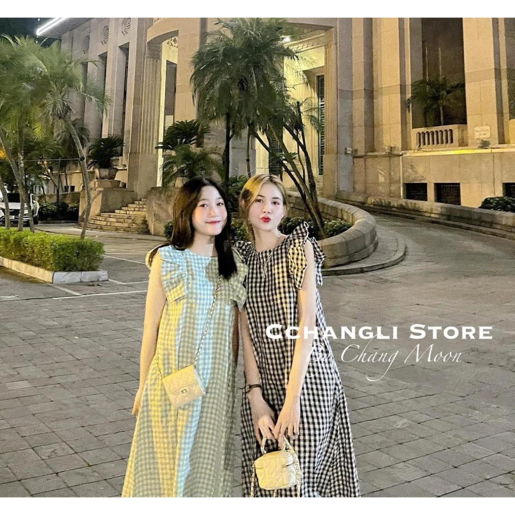 Đầm kẻ bèo vai 5 màu có túi hông siêu xinh