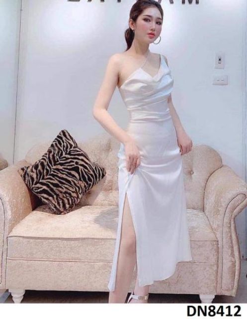 Đầm lụa dài cổ rũ lệch vai sexy