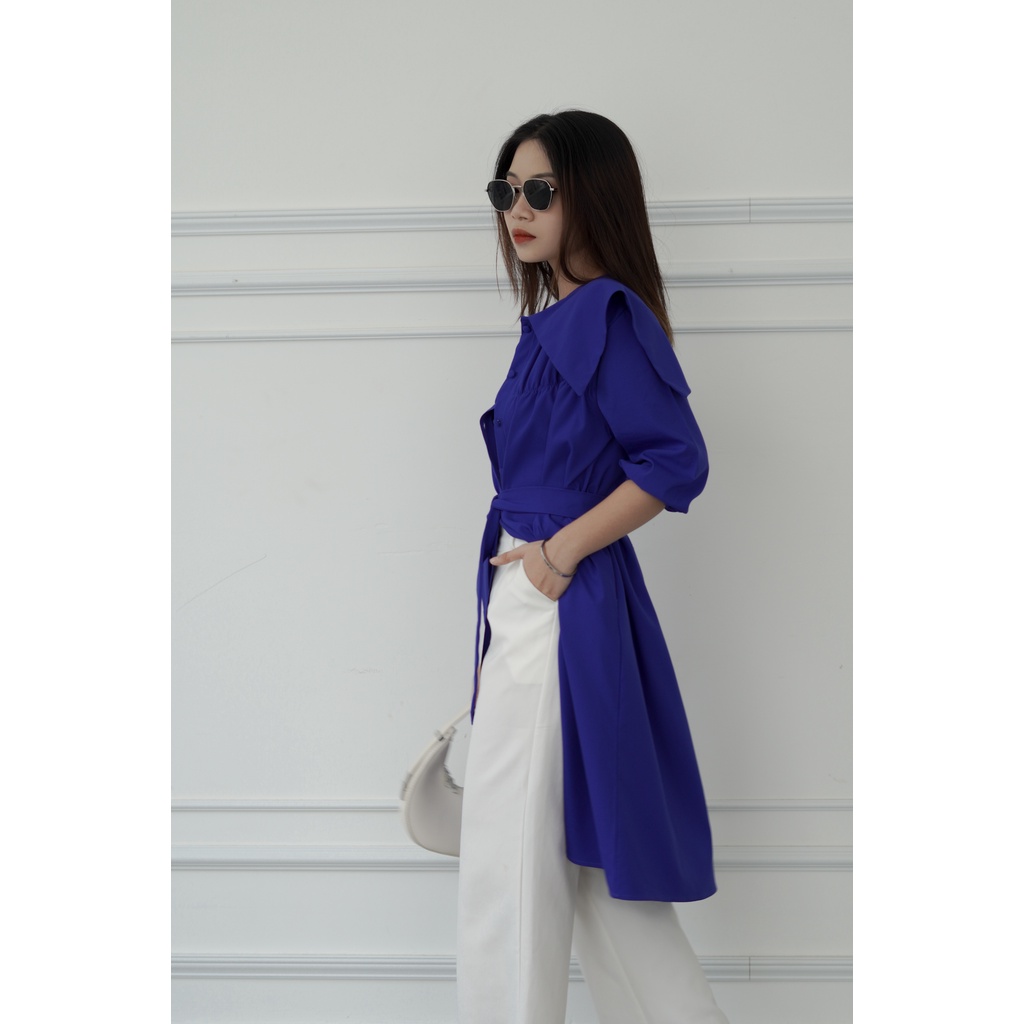 Đầm lụa Tuyết cổ Peter Pan siêu Mát Mịn màu Xanh bích