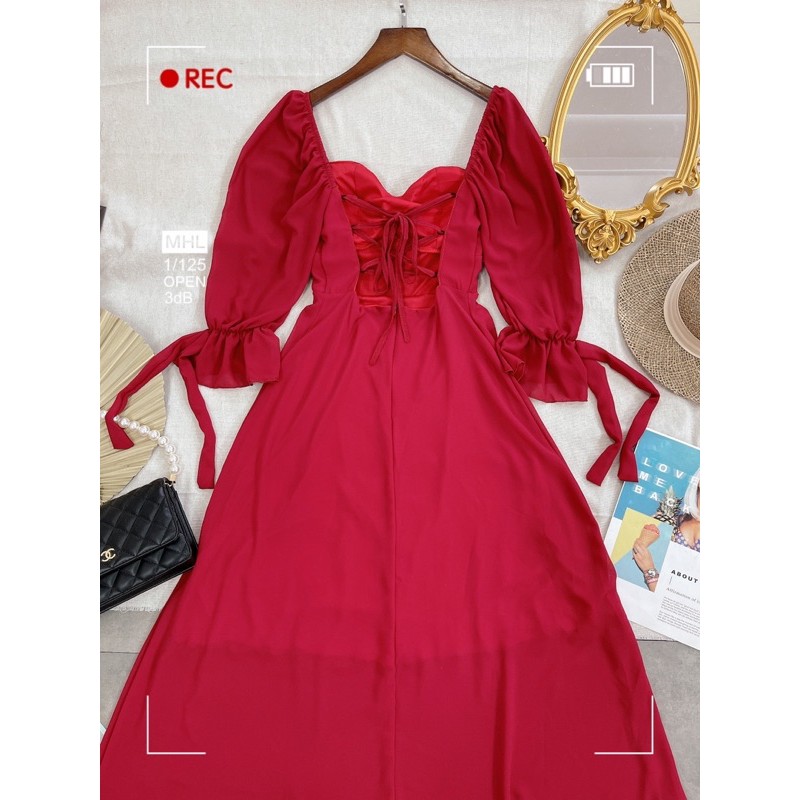 Đầm Maxi Hở Lưng Đan Dây Có Lót Trong Dáng Xoè Đi Biển Du Lịch