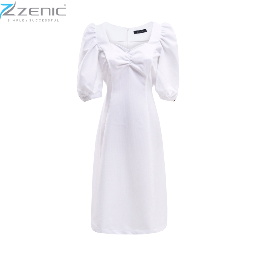 Đầm Midi Vintage- Tay Bồng Nhẹ-Cổ V-Có Dây Đai Eo, Màu Trắng ZENIC ZENIC chuyên thiết kế các sản phẩm thời trang công sở, mẫu mã phong phú đa dạng, đảm bảo chất lượng về chất liệu sợi vải, thông số kỹ thuật thiết kế tiêu chuẩn và kiểm định chất lượng may sản phẩm.