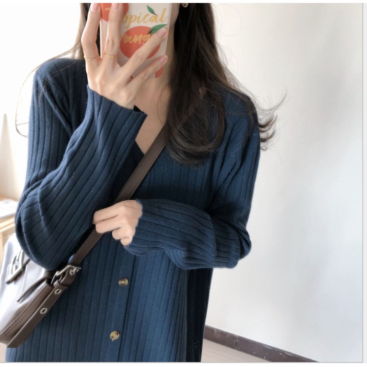 Đầm nữ đẹp🍒FREESHIP🍒Váy len cúc thu đông dáng suông dài xinh xắn