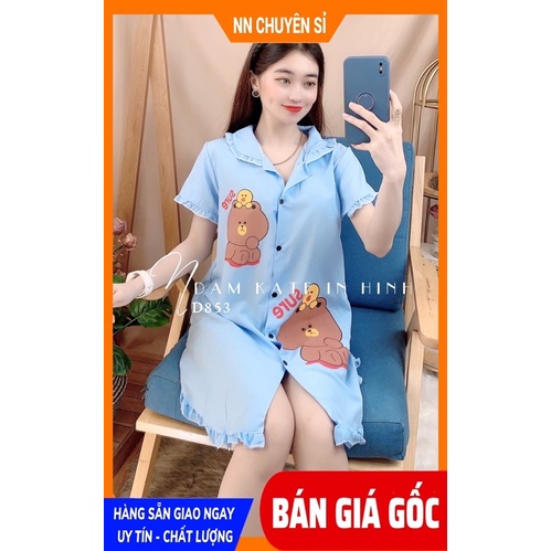 Đầm nữ mặc nhà phom rộng chất vải mềm mịn mát in hình gấu in hoạt hình dễ thương D853