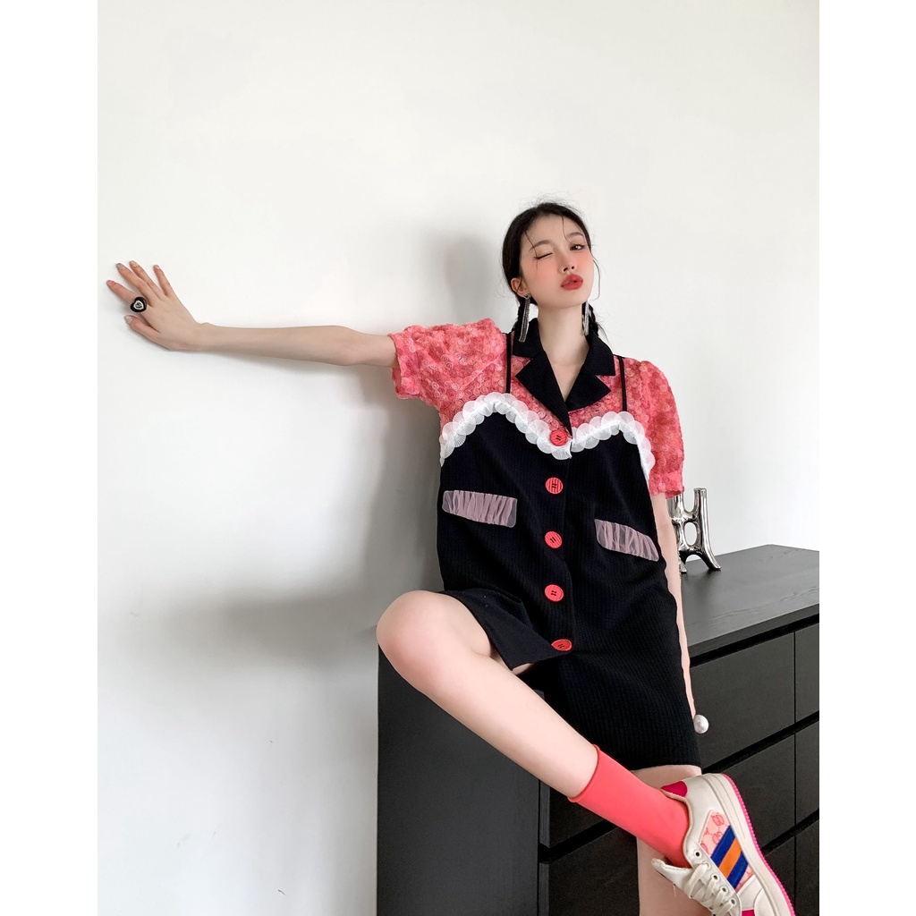 Đầm Ngắn Dáng Rộng Thời Trang Mùa Hè Hàn Quốc Hàng Mới Thiết Kế Mỏng Kiểu Pháp