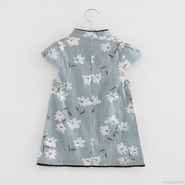 Đầm ngắn tay kiểu sườn xám in hoa cổ điển phong cách Trung Hoa cho bé gái