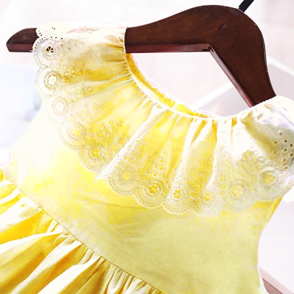 Đầm Sát Nách Màu Vàng Phối Ren Hoa Cho Bé Gái