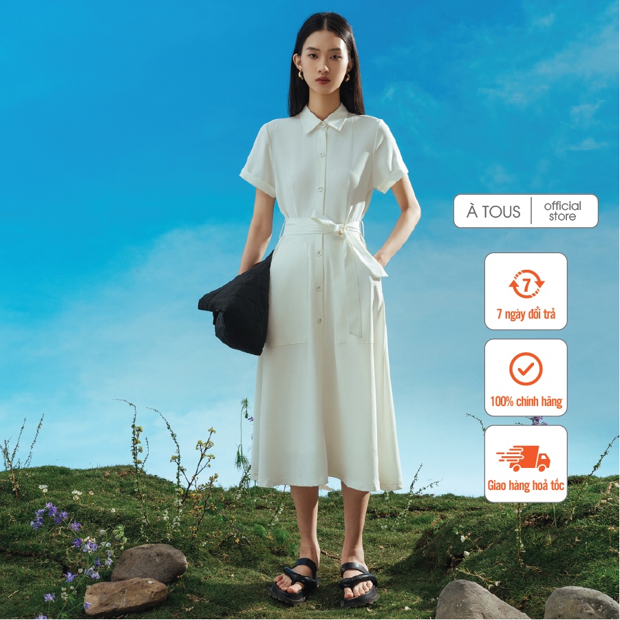 Đầm sơ mi công sở thiết kế ÀTOUS SELENA đầm midi trắng dài qua gối sang trọng cao cấp chất liệu mềm nhẹ