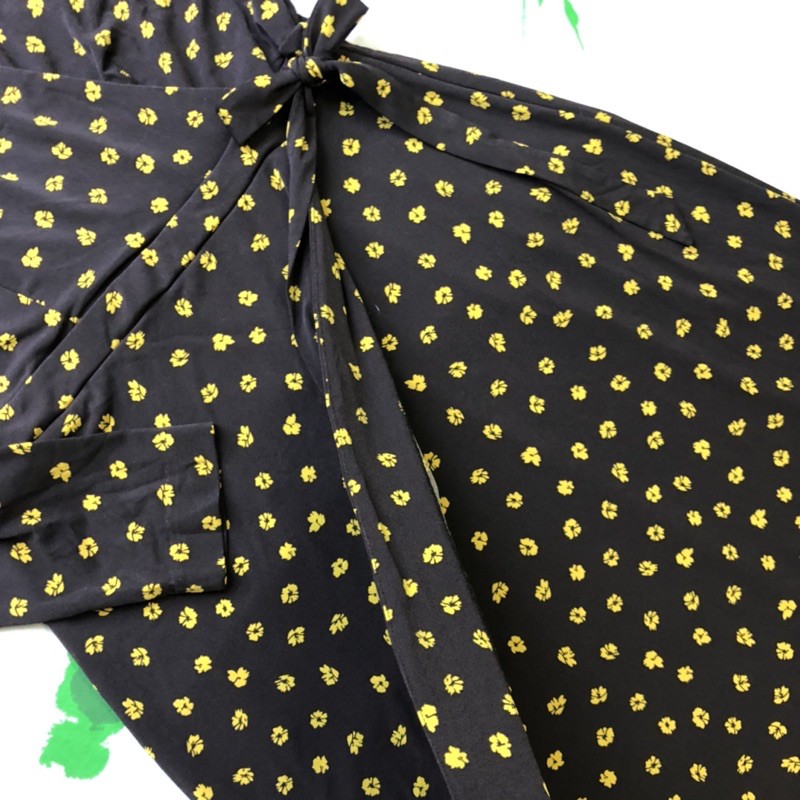 Đầm Thun Rayon Rachel Zoe Nâu Hoa Vàng Tay Dài Cổ Y Chéo Thắt Nơ Eo Đắp Tà Hàng xuất dư Chất liệu: Thun rayon 2 lớp dày dặn, kín đáo, mềm mại, mịn màng, mát lạnh, thoáng và thấm hút mồ hôi cực kì tốt Màu sắc: Nâu bông vàng Kiểu cổ: Cổ Y chéo thắt nơ eo Kiểu tay: Tay d