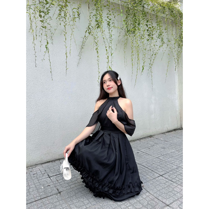 Đầm tiểu thư công chúa voan rớt vai cổ yếm ATHE 💓FREESHIP💓 mặc sinh nhật, dự tiệc, kỷ yếu