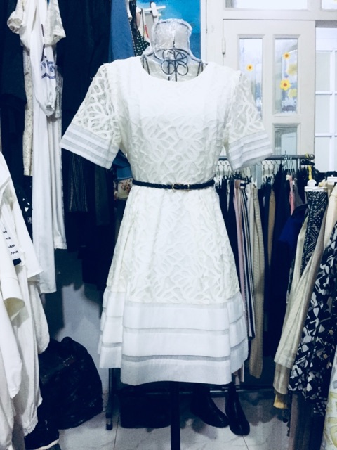Nhiều mẫu mầm nừ màu trắng. 1. Đầm giả sét : size M, dưới 53 kg. Lớp ngoài chất co giãn nhẹ, lớp trong ren. Dài tới gối. 2 đầm dài tay: size M. Dưới 55kg. cổ somi, eo bo thun bảng to, tay dài cột nơ. Dài ngang gối. 3. Đầm sơmi : size M, dưới 55kg. Chất linen. Ngắn tay, dáng suông, ôm nhẹ phần eo ( như hình mẫu). Đầm có 2 lớp. Dài qua gối. 4. Đầm suông phom rộng :free size, dưới 65kg. Chất co giãn nhẹ. Kiểu sơmi phom rộng cánh dơi, dài tay, túi 2 bên hông. Dài qua gối. 5. Đầm suông: size S, M. dưới 53kg. Chất đũi phối voan. Lớp trong chất đũi Nhật cũng là lớp chính, lớp vải bên ngoài chất voan. Cổ tròn. Tay lỡ, bo. Dài qua gối. Nếu cần thêm thông tin về sản phẩm, khách hãy ib cho shop nhé. Hàng si tuyển. Độ mới cao. 98-99%. Bao lỗi.