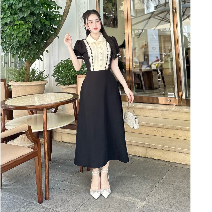 Đầm váy nữ dáng xòe phối ren ngục đính cườm lên form sang trọng, quý phái