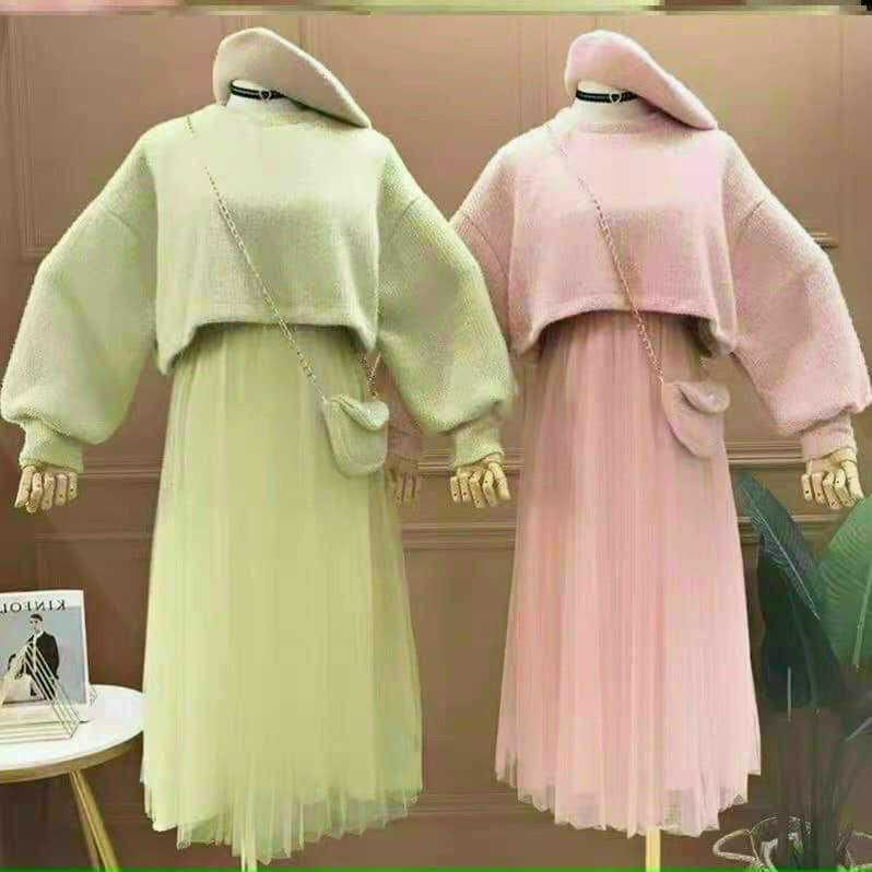 Đầm váy nữ,Sét 3 món công chúa siêu xinh.áo croptop và váy lưới xòe kèm túi đeo chéo siêu hót