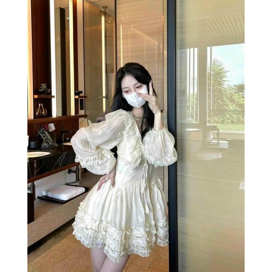 Đầm Váy Tơ Xốp Bèo Cổ Đan Dây Ngực Bèo Tầng Tay Dài A4CV006