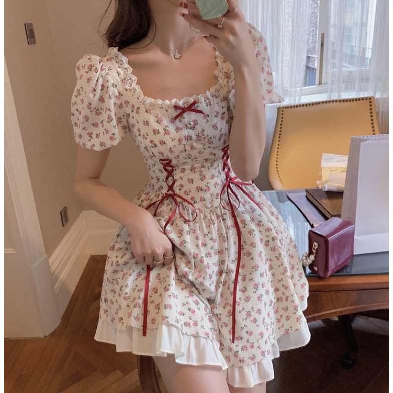 ĐẦM VÁY TIỂU THƯ BUỘC DÂY EO HOA NHÍ NGẮN XOÈ ULLZANG HÀN QUỐC XUÂN HÈ TẾT VINTAGE PROM KỶ YẾU ĐẦM SINH NHẬT