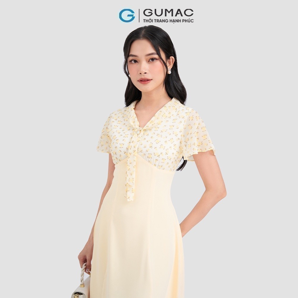 Đầm xòe phối hoa thời trang GUMAC DD03055