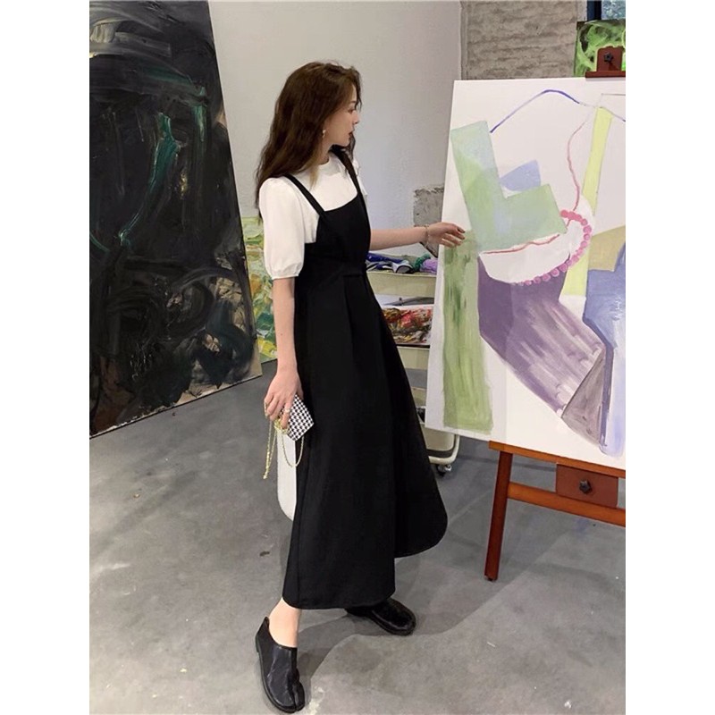 Đầm yếm dài Hàn Quốc dễ thương - Váy yếm hai dây vintage kèm áo phông