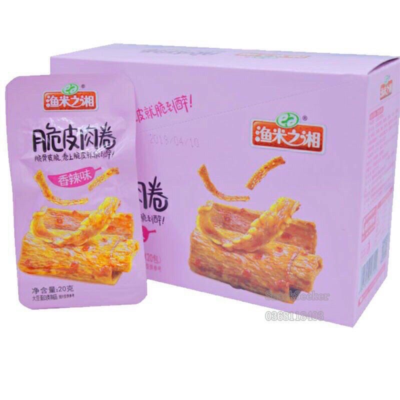 Đậu phụ cay cuộn sườn sụn - đồ ăn vặt ngon ngon TL : 20g/1 gói HSD : 9th từ ngày sx Ngày sx in trên bao bì Đậu phụ cay cuộn sườn sụn có 2 vị đậu phụ cuộn sườn sụn và đậu phụ cuộn cá cơm vị cay cay siêu ngon