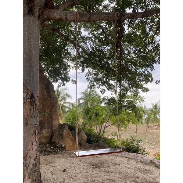 Đặt qua zalo ship 30k/5kg Xích đu gỗ nguyên tấm, buộc bằng dây thừng dây dừa, có móc đóng trần nhà, con quay ròng rọc