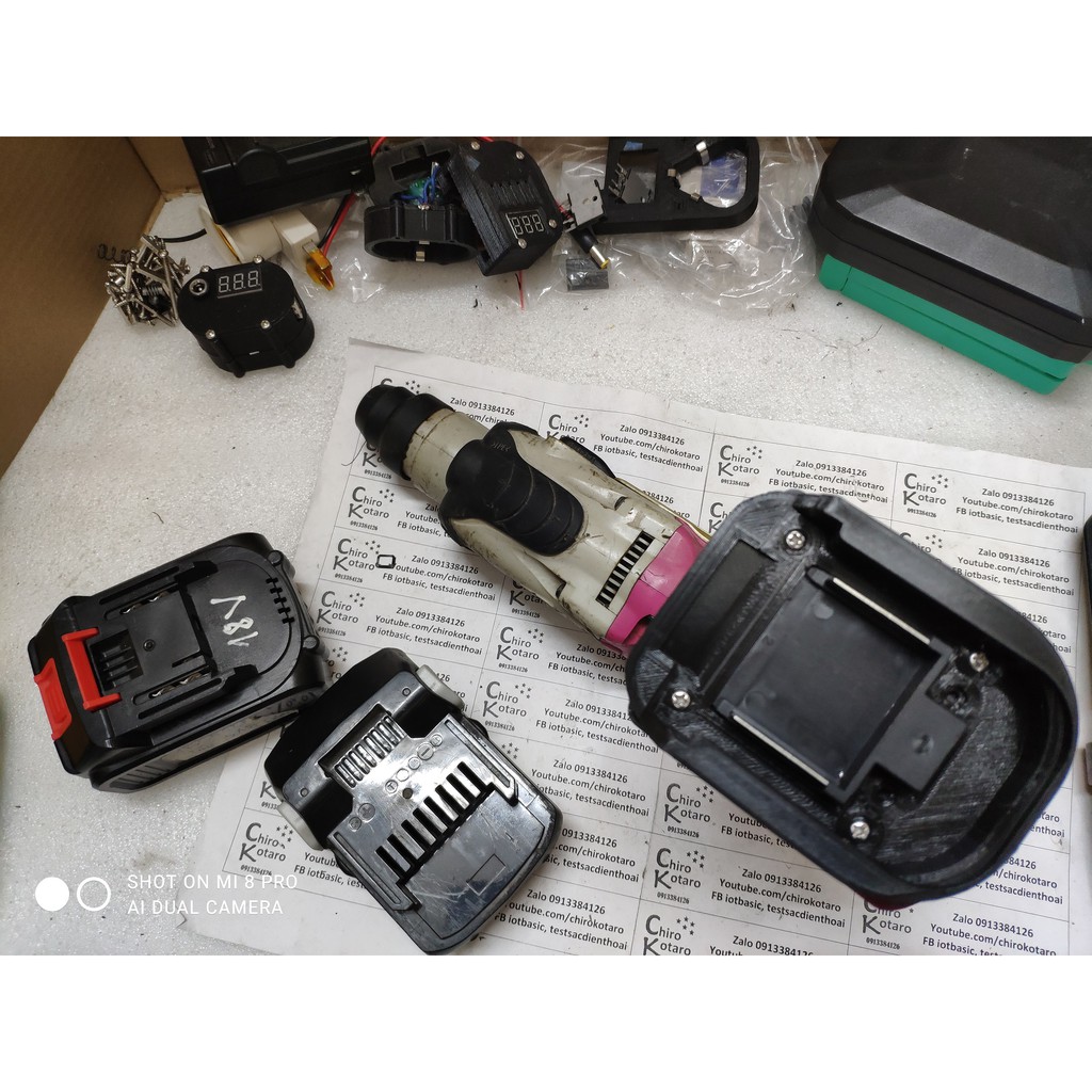 Đế chuyển chân khoan, vit Hitachi 18V Li-ion sang dùng hộp pin cài Makita + Đế in 3D chắc chắn + Với hộp pin Makita bạn có thể nâng cao dung lượng pin gấp tới 5 lần pin gốc + Có lựa chọn kèm chân tiếp với chân máy Makita và được hàn dây sẵn + Gắn vỏ pin Makita tối đa lên tới 15 pin + Đế in màu sắc random (chủ yếu màu đen) + Cố định bằng ốc vit chắc chắn hơn nhiều so với lấy chốt + Đế thiết kế dạng module, thay thế từng phần dễ dàng + Bộ đế chuyển đã đầy đủ chốt lẫy + Có 2 phiên bản máy Hitachi là loại A và B, xin hãy chọn đúng loại vì không lắp lẫn nhau được + Đế cài có 2 phiên bản là bản thường và bản nâng cao kèm LED vol + Các bản đều có đầy đủ với đầu tiếp xúc pin + Bản nâng cao có thêm lựa chọn kèm LED đo vol để theo dõi điện áp bộ pin Chú ý. + Sản phẩm chỉ là đế chuyển chân pin + Đế được thiết kế để dùng với ốc M3 có kích thước cố định, KHÔNG dùng ốc kích thước lớn hơn hoặc có độ dài dài hơn + Không bao gồm vỏ pin makita hay máy khoan, vit + Sản phẩm không bao gồm pin + Ốc lắp xin vặn bằng tay + Vui lòng lắp đúng cực pin khi cài, sai cực có thể dẫn tới hỏng cò + Trong trường hợp vặn máy chờn ren, xin đổ keo hoặc dùng nhiệt để chỉnh lại vị trí bắt ốc + Bộ đế lắp theo thứ tự từ đáy dưới tới lẫy cài, xin xem video để rõ hơn về cách lắp + Bộ đế tháo lắp bằng vit nên không phải là dạng tháo lắp liên tục, vì vậy bạn cần cân nhắc trước khi sử dụng + Thường mục đích là lắp cố định đế lâu dài + Sản phẩm thiết kế bằng module, các bộ phận hỏng có thể được thay thế dễ dàng + Góp ý cải tiến sản phẩm xin chat zalo, cảm ơn! + Tham khảo thêm tại video tại youtube.com/chirokotaro hoặc chirokotaro.blogspot.com Zalo 0913384126