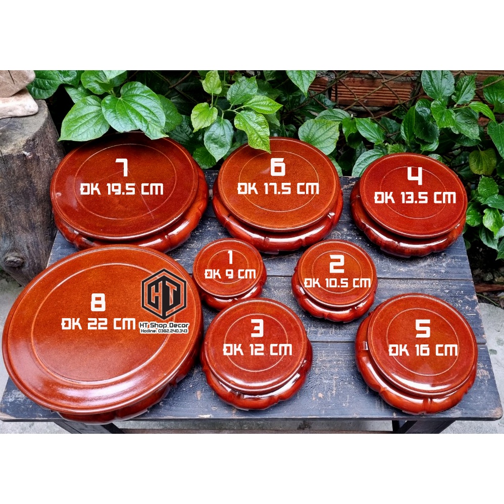 **Thông tin chi tiết: - Đế gỗ dùng để đồ trang trí phong thủy, trưng bày sản phẩm, để chậu hoa/tượng Phật - Chất liệu từ gỗ tự nhiên( Gỗ Tràm, Xà cừ, Hương,...), an toàn, không hề độc hại - Dùng làm phụ kiện chụp ảnh trang trí sản phẩm. - Đường kính từ 9~22 cm - Đã qua các công đoạn nhám, xử lý pu chống mói mọt *** Shop đảm bảo 100% giao hàng và kích thước như ảnh cung cấp. ------------------------------------------- **Kích thước: có 8 kích thước đường kính khác nhau - Số 1 : Đường kính 9 cm cao 5.25 cm - Số 2 : Đường kính 10.5 cm cao 5.5 cm - Số 3 : Đường kính 12 cm cao 6 cm - Số 4 : Đường kính 13.5 cm cao 6.25 cm - Số 5 : Đường kính 16 cm cao 6.5 cm - Số 6 : Đường kính 17.5 cm cao 6.75 cm - Số 7 : Đường kính 19.5 cm cao 7 cm - Số 8 : Đường kính 22cm cao 7.25 cm ================================ ** Bảo quản: - Sử dụng ở nơi khô thoáng tránh ẩm mốc, nhiệt độ quá cao. ============================ + Sản phẩm dùng để kê những đồ trang trí nhỏ ví dụ : - Tượng gỗ/ tượng Phật/ Bonsai - Chậu Cây Cảnh - Lọ Hoa - Đồ Cổ - Bát Hương - Và Rất Nhiều đồ vật khác .... --------------------------------------------------------------------------------------------------------------------------------------------------- #de #lot #delot #lotnen #degolotnen #dedecor #lotdecor #degodecor #degotrangtri #logo #dego #trangtri #decor #nen #nenthom #sapthom #tinhdau #kygohuong #chandegohuong #kyvuong #kytron #kybet #kyde #debathuong #deketuong #dekelohoa #dekebathuong #dekelucbinh #dekethantai #dekego #deke #dego #degohuong #degogu #degogo #degotrac #degodep #kygohuong #kygogu #kygotrac #kygogo #dongohuong #dongogu #kytron #detuong #don #trangtrinhacua #phongkhach #phongtho #banlamviec
