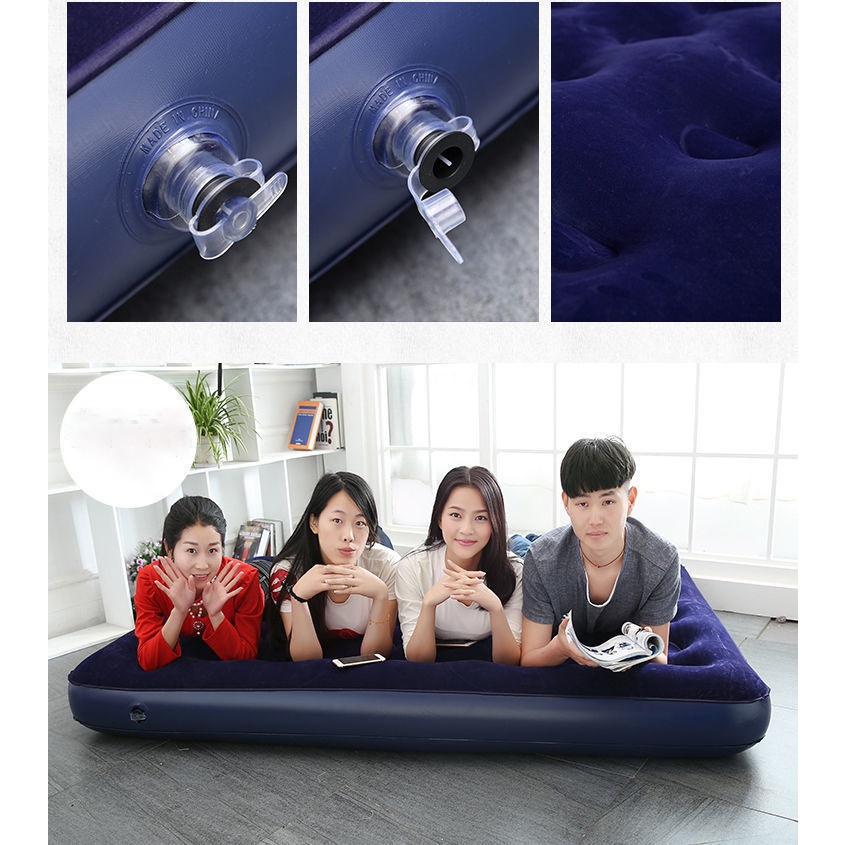 Nệm hơi du lịch, đệm hơi cao cấp * Thông tin chi tiết sản phẩm: Có 2 loại kích thước: 1.86m x 76cm x 25cm 1.86m x95cm x25cm Đối tượng sử dụng: Mọi lứa tuổi Màu sắc: Xanh tím than * Ưu điểm: - Bơm tiện lợi - Nhỏ gọn, thuận tiện để trong các ngăn kéo, hộc tủ - Dễ dàng bơm và xả hơi, giúp bạn có thể cất gọn gàng mà không chiếm quá nhiều diện tích trong không gian nhà bạn - Dễ dàng di chuyển, mang đi du lịch dã ngoại - Dễ dàng vệ sinh, lau chùi, bề mặt nhung mềm mại , êm ái tạo cảm giác thỏa mái cho người sử dụng - Thoáng khí và mát hơn đệm thông thường do có các rãnh thoáng khí, lớp phủ nhung bên trên bề mặt nhằm tránh bề mặt đệm tiếp xúc trực tiếp vào da, tạo cảm giác thoải mái, thông thoáng mồ hôi. * Chú ý: Màu sắc trên ảnh có hơi khác một chút so với ảnh thực do ánh sáng, màu bên ngoài là màu tím đậm hơn ạ. #demhoi#demgapgon#vanphong#demhoigapgon#demtiendung#tienich#nhogon#dulich#bomhoi#dem#nem#ap