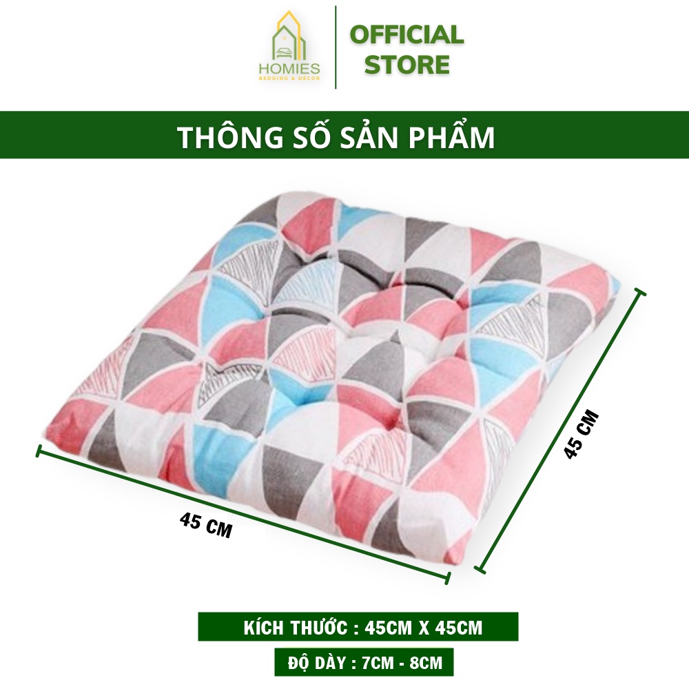 TÊN SẢN PHẨM : Đệm Ngồi Bệt HOMIES Vải Canvas Họa Tiết Phong Cách Hàn Quốc - Size 45cm x 45cm Thông số sản phầm : - Kích thước : 45cm x 45 cm dày 7cm - Chất Liệu : Vỏ ngoài được làm bằng vải dày dặn, bên trong 100% bông tinh khiết tạo cảm giác êm ái khi ngồi