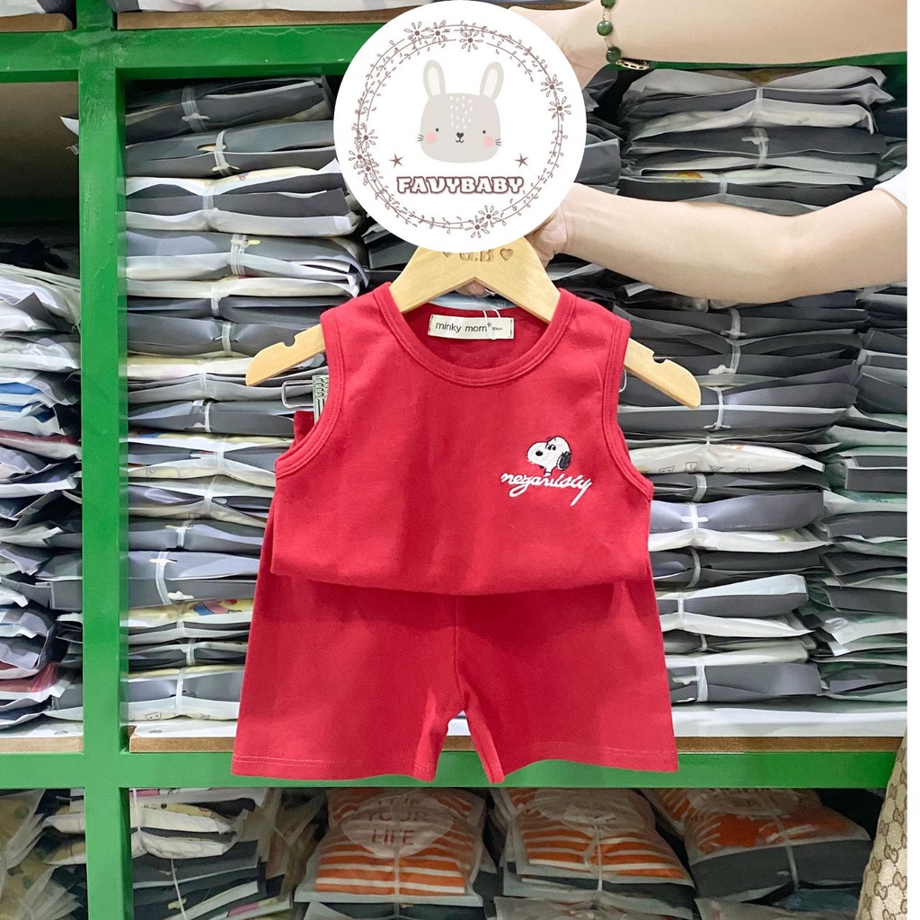 Đồ Bộ Ba Lỗ MINKY MOM Sát Nách Bé Trai Bé Gái Cotton Hàn Màu Trơn Hình Chó Con Trẻ Em 0 1 2 3 4 5 Tuổi-Favybaby