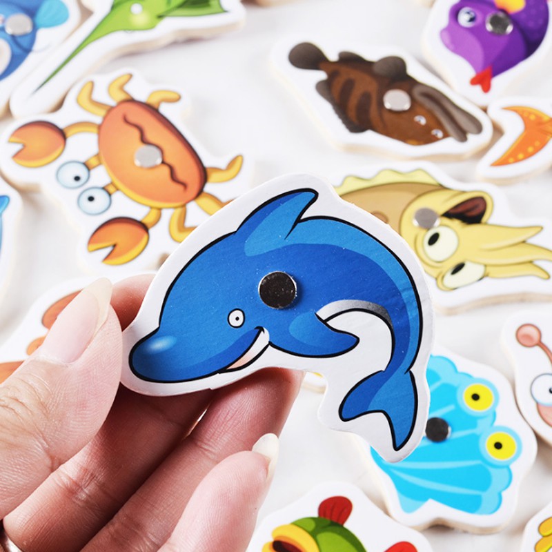 -ĐỒ CHƠI CÂU CÁ bằng gỗ 2 cần câu cho bé là loại đồ chơi vô cùng quen thuộc với các em nhỏ, giúp cho bé phát triển trí não toàn diện và tăng thêm sự khéo léo, nhanh nhẹn. Đồng thời còn cho bé học được cách CÂU CÁ như người lớn, rèn luyện sự kiên trì tập trung của trẻ. -Có nhiều loại ĐỒ CHƠI CÂU CÁ khác nhau để bạn lựa chọn, có thể là các bộ CÂU CÁ bằng nhựa, ĐỒ CHƠI CÂU CÁ chạy pin vui nhộn hay các bể cá bằng phao bơi dưới nước như thật đều thu hút các trẻ. Hôm nay HAKADO sẽ giới thiệu đến bố mẹ ĐỒ CHƠI CÂU CÁ 2 cần câu có nam châm. Đây đang là món đồ chơi được các bé yêu thích nhất hiện nay. ĐỒ CHƠI CÂU CÁ nam châm bằng gỗ 2 cần giúp bé vui chơi hào hứng, rèn luyện sự khéo léo, kiên trì, điều chỉnh tay để câu được loài cá mình muốn. Thông qua trò chơi, bố mẹ có thể khéo léo dạy bé nhận biết về các loại động vật dưới nước như cá, rùa, tôm, cua,... Chất liệu gỗ cao cấp an toàn, hình dáng ngộ nghĩnh, màu sắc bắt mắt, sống động, thu hút sự ưa thích của các bé. – Chất liệu gỗ cao cấp và an toàn với bé. – Sản xuất, chế tác và gia công kỹ lưỡng. – Bộ sản phẩm gồm: 2 cần câu + 32 cá gỗ với kích thước khác nhau. – Hình dáng ngộ nghĩnh, màu sắc bắt mắt, thu hút sự ưa thích của các bé. _ Có thể chơi 2 người nên rất tiết kiệm đặc biệt nhà có từ 2 bé trở lên _ Phù hợp cho bé từ 2 tuổi trở lên – Kích thước: 26 * 21 * 4.1 cm – Trọng lượng: 400 g Xuất xứ: Trung Quốc #dochoi #dochoigo #dochoicauca #cauca #namcham #dochoigiaitri #dochoitreem #dochoiantoan