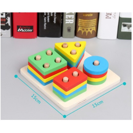 Đồ chơi gỗ cho bé xếp hình vào cọc gỗ nhiều màu sắc