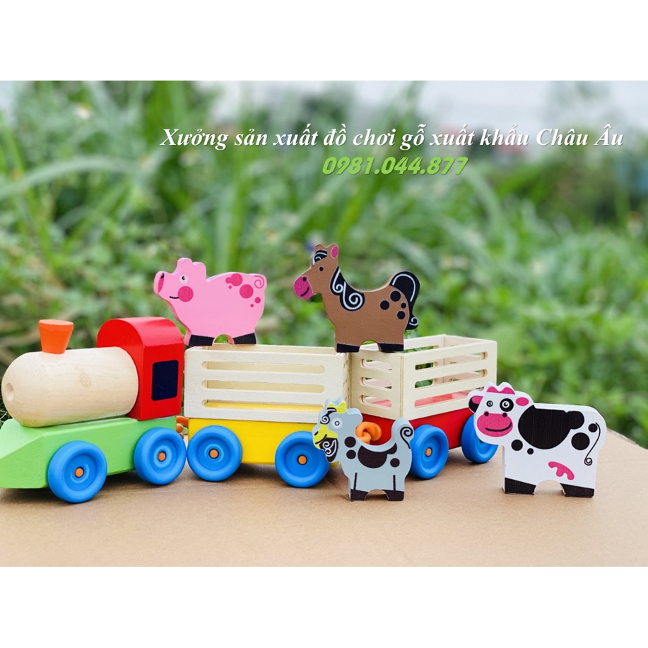 Đồ chơi gỗ việt nam xuất khẩu châu âu - Đoàn tàu chở thú - xe đồ chơi chở thú