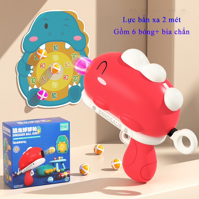 Đồ chơi mô hình súng bắn bóng khủng long kèm bia mục tiêu, bắn xa 8 mét, nhiều màu sắc