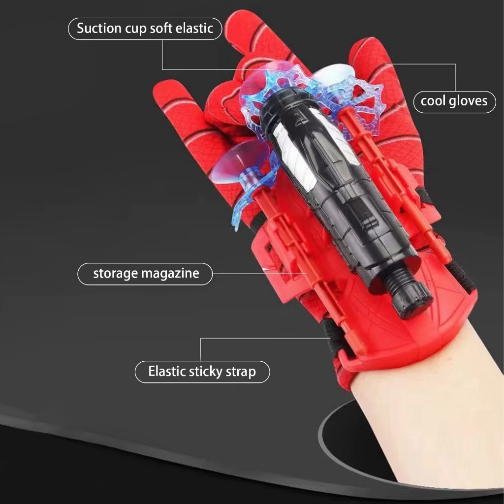 Đồ Chơi Spiderman Bắn Tơ Người Nhện - Có Giác Hút Dính Đồ Vật, Kèm Dây, Cự Ly 5M - Găng Tay Người Nhện
